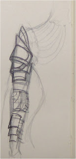 So the intentions of this piece were to explore having a duality of form, and pushing the boundaries of what is socially acceptable. What is the line that separates the girl who wears her Lord of the Rings cloak to every class, and Alanna Zimmer stomping down the Alexander McQueen Fall 2010 runway wearing essentially an intricate breastplate? The goal was to construct a sleeve of armor that can be taken apart the separate pieces worn as jewelry.